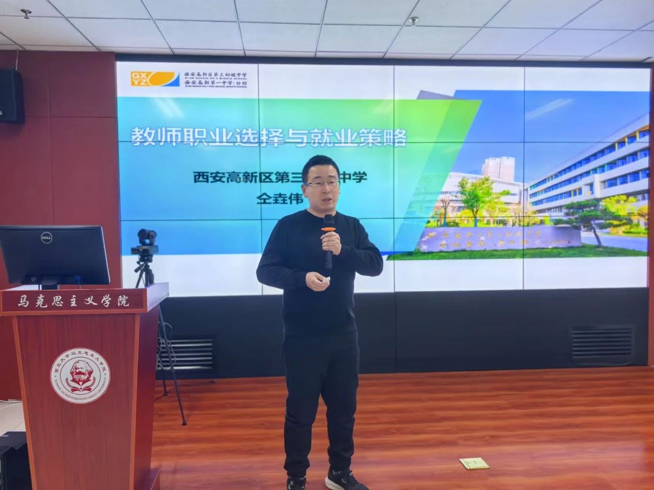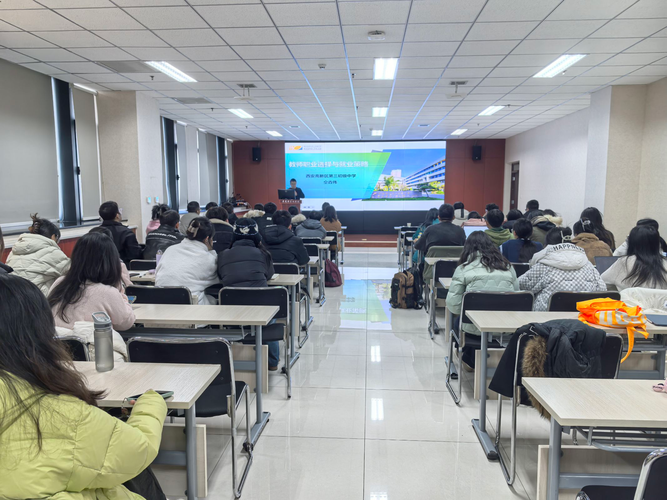12月10日下午,西安高新区第三初级中学办公室主任,中学一级教师,西安高新区教学能手仝垚伟老师应邀为威廉希尔官网研究生在学院报告厅作《教师职业选择与就业策略》专题讲座。讲座由威廉希尔官网党委副书记邵平主持。