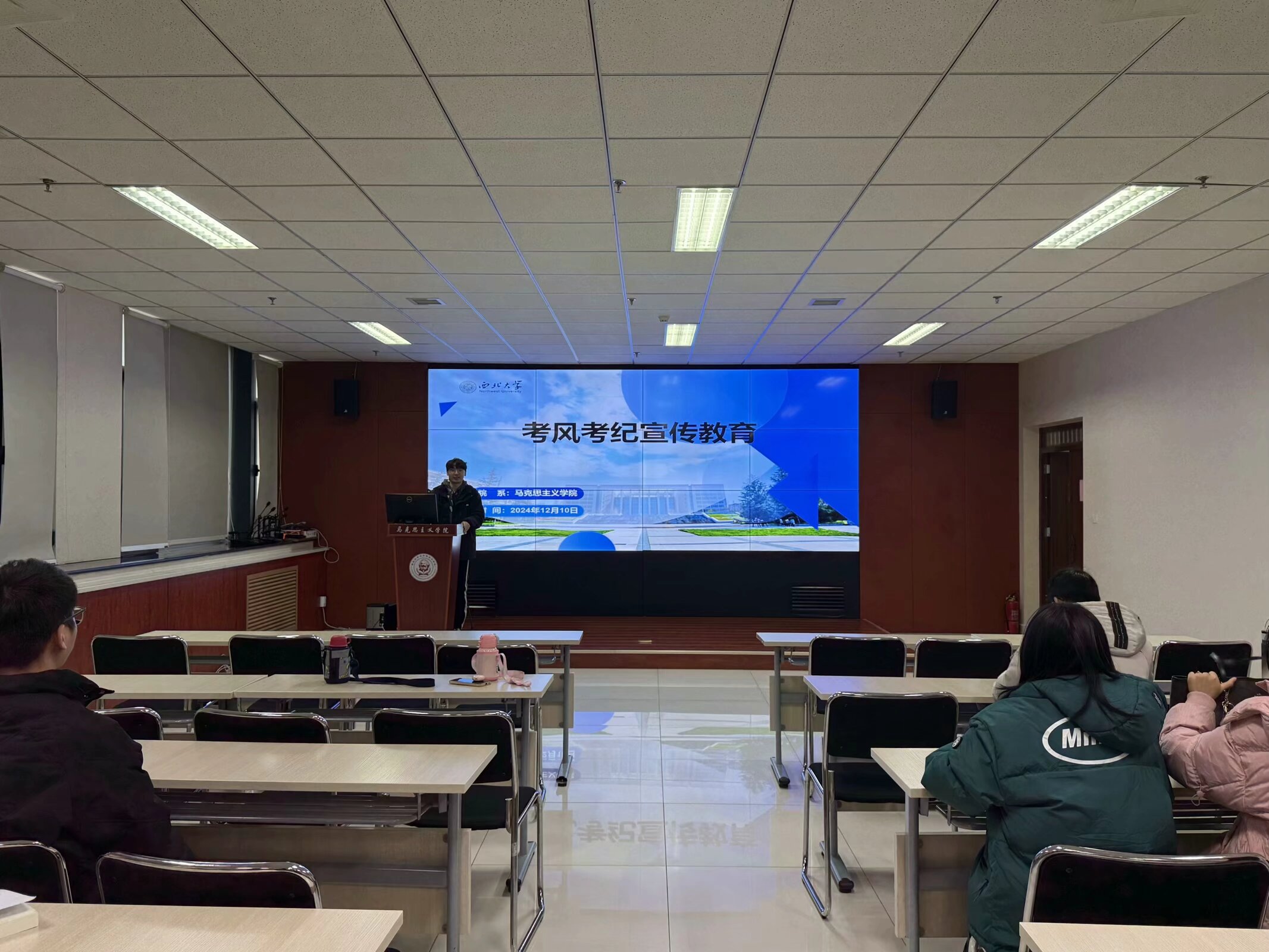 12月10日下午,威廉希尔官网召开了四六级考风考纪宣传教育大会。会议由2024级马克思主义中国化研究专业硕士研究生张天一主持,威廉希尔官网全体四六级考生参会。
